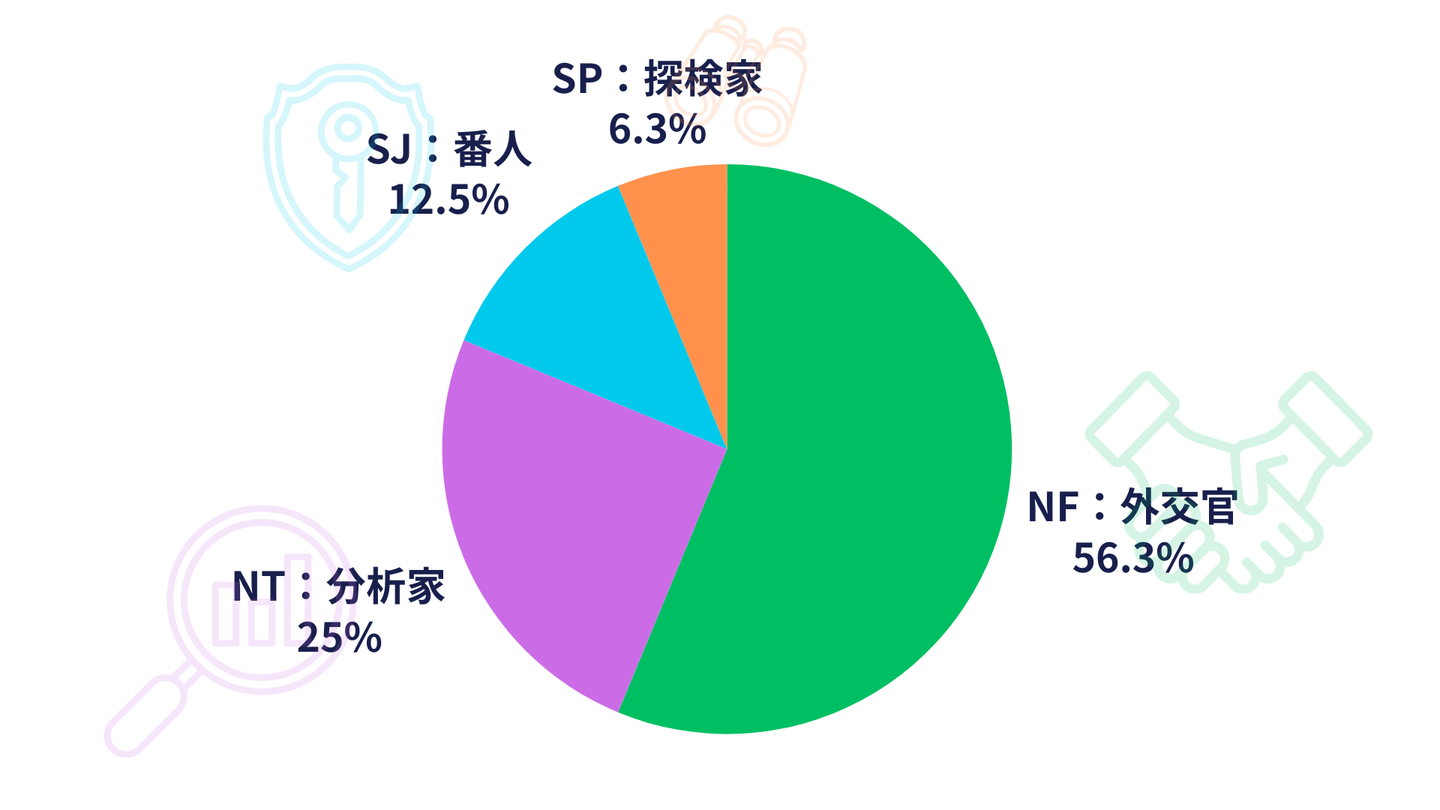 コンサルタントチームの大きな特徴は、ENFPを中心とした外交官タイプ(NF)が非常に多いこと。