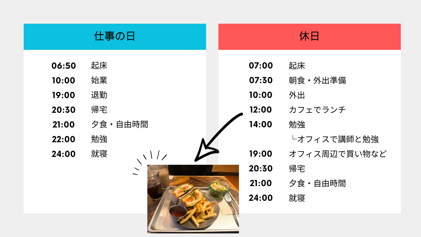 仕事の日は自宅で、休日はHRIオフィスの学習スペースに行って講師と一緒に勉強を進めます。
