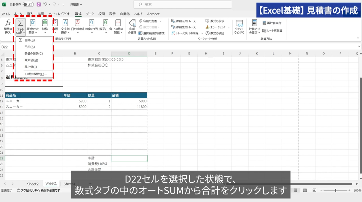 動画では、見積書や売上管理表を動画に沿って作成し、