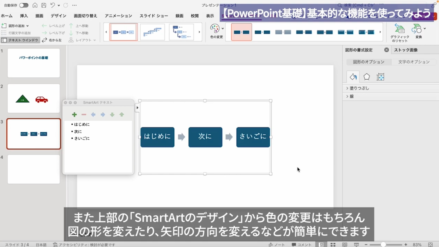 図形やデザインの使い方、表やグラフの作り方など、