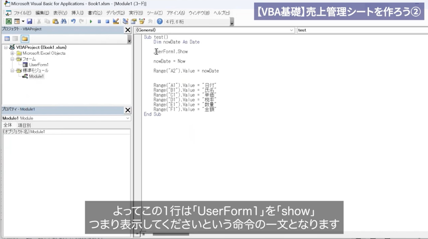 また、ExcelではVBAを使った管理表作成にも取り組んでいただきます。