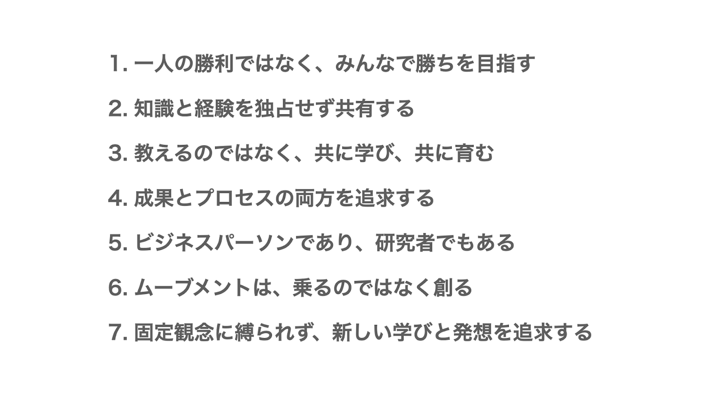 佐藤: 次に企業としてのカルチャーについても触れておきたいと思います。せっかくの対談形式ということで、勝手ながら、創業時から見てきた「Z&Cの組織カルチャー」を僕なりに言葉にしてみました。それをもとにお二人の考えを聞いてもいいですか?