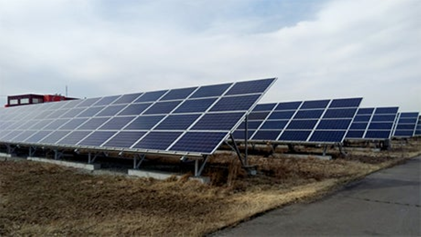 千歳線「千歳」駅から車で約15分の場所にある滑走路跡地の一部約15,000坪の土地を再活用した太陽光発電所です。