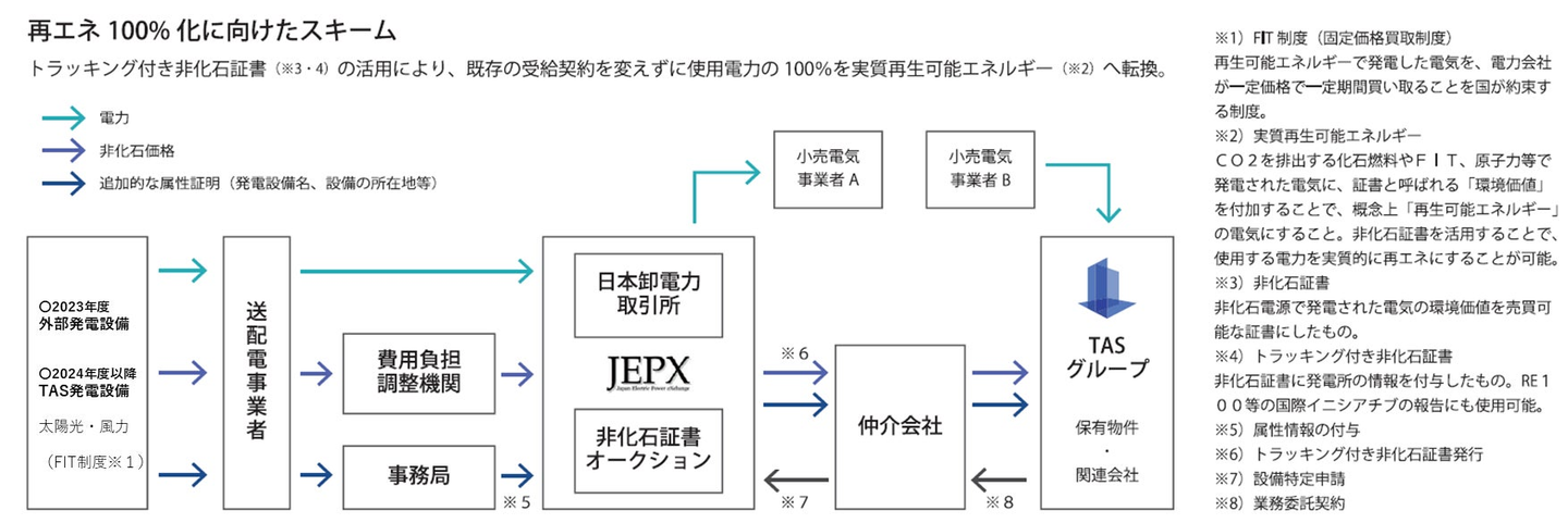 株式会社東京アセットソリューション 2023年度グループ全体の電力使用量における再生可能エネルギー電力比率100%を達成