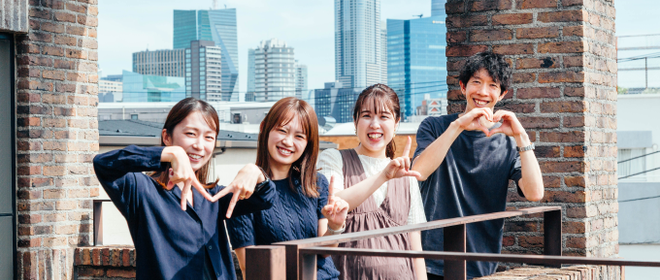 12時〜4時がコアタイムとなっており、勤務時間の開始や終了はその人の生活に合わせた働き方ができます。バリューのひとつに「感動 ~感じて、動く~」を掲げており、社員も毎日の好奇心を大切にし、多様な体験を通じて感性を磨くことを心がけています。