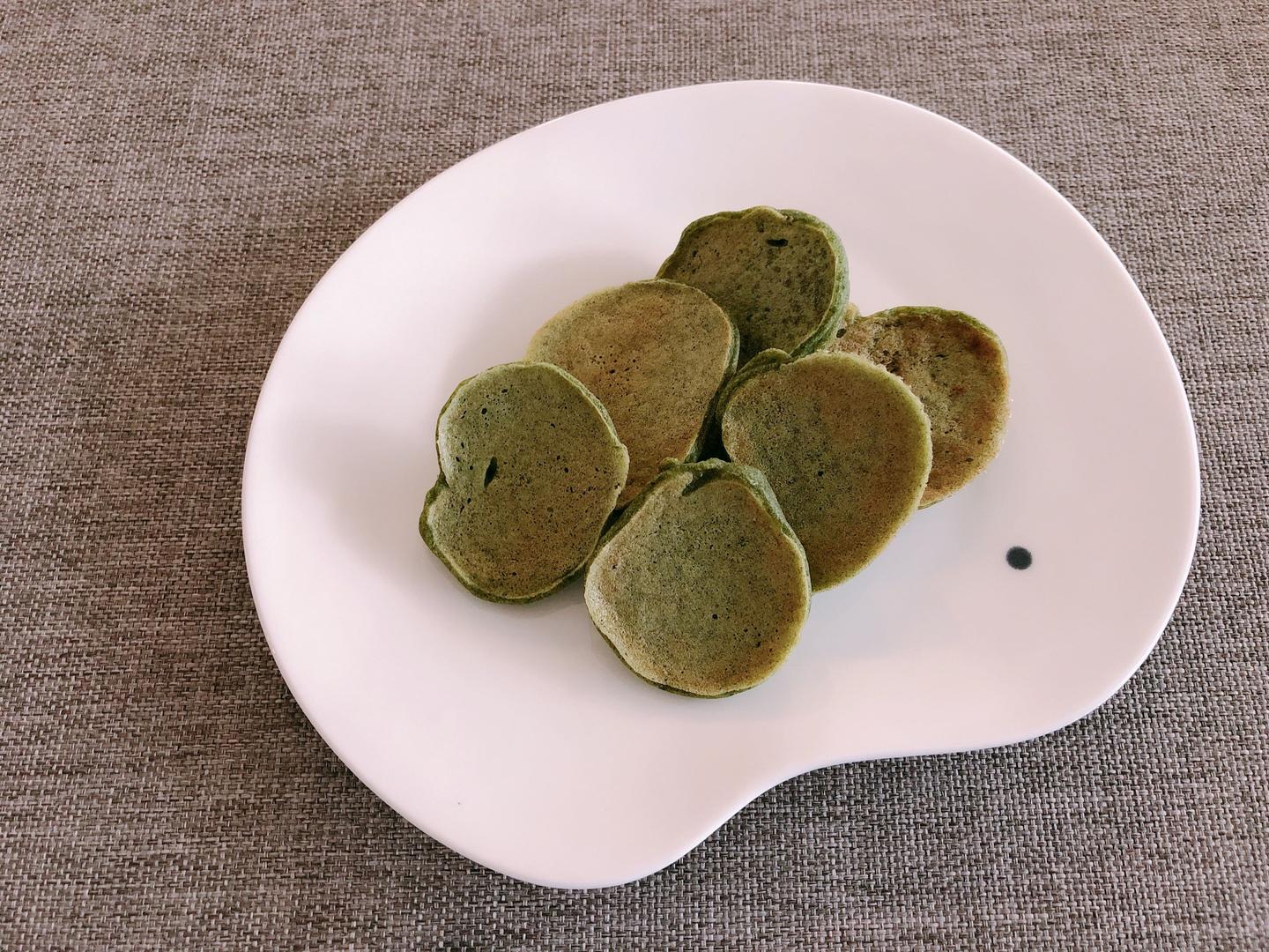 小松菜の苦みをバナナで和らげることで食べやすくなります。米粉は少し水分を多めにするのがポイント!