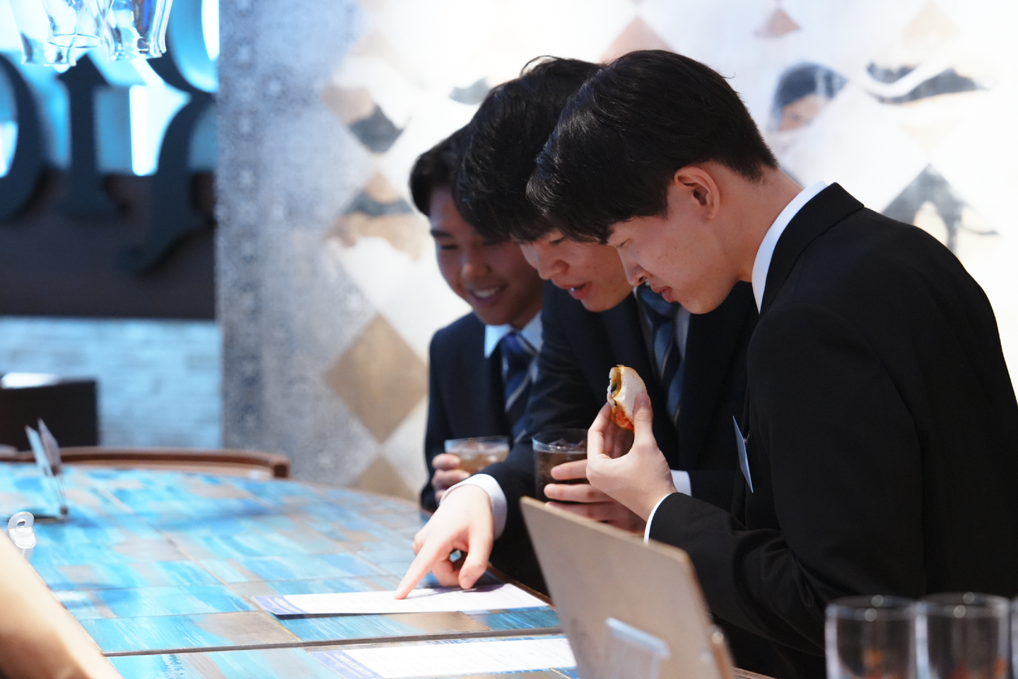 オリエンテーション後は、会場を移動して立食形式の懇親会を開催しました。役員や社員、内定者が肩肘張らずに会話を楽しむ様子があちこちで見られ、会場は終始和やかで活気あふれる雰囲気に包まれていました。短い時間ではありましたが、多くの内定者が先輩社員に仕事や社会人生活の話を質問し、同期同士でも趣味や興味の話で盛り上がるなど、自然に親睦を深められる貴重な機会となりました。「初めて会う同期とこんなに打ち解けられるとは思わなかった」「先輩と話せて入社後のイメージが湧いた」と、参加者からも喜びの声が多く聞かれました。