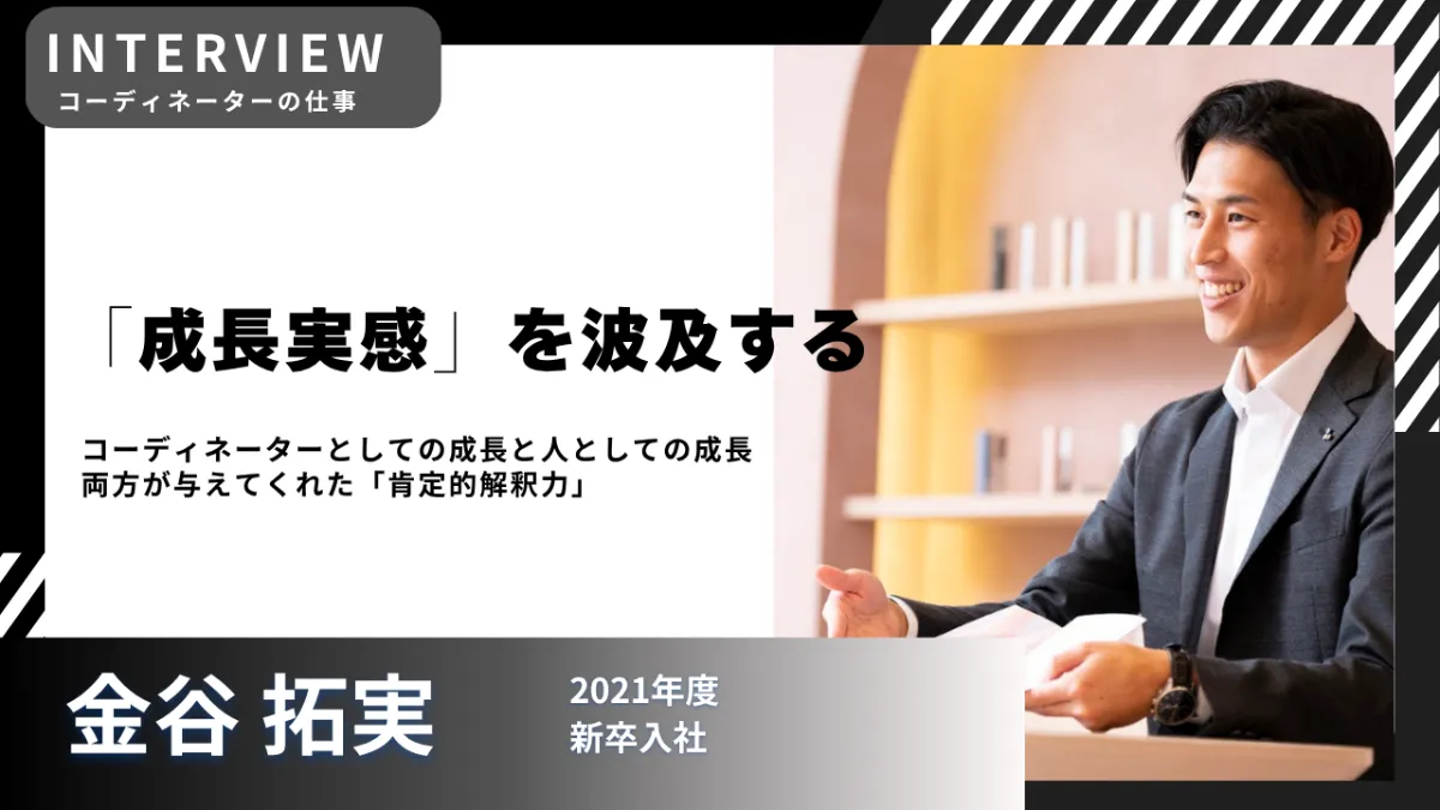 コーディネーターを目指す人には、「すべての出来事に対して、自分にベクトルを向けて成長すること」が大事だと思っています。仕事をする上で、例えばアポが少ないとかクライアントが忙しいとか、そういう「外的要因」がいくらでもあると思います。でもそこに思考を向ける前に「どうやったらできるか」と自分に問い直すような、ほんのちょっとした思考の転換をどれだけ早くできるかが成長・成果に繋がると思います。僕も今、それにチャレンジしている最中です。