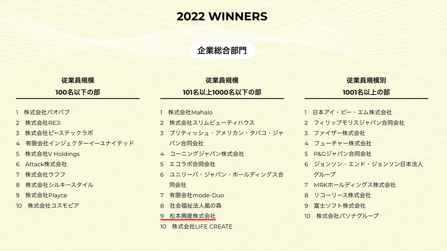 企業総合部門において、従業員規模101名以上1000名以下の部で「9位」にランクインしました!