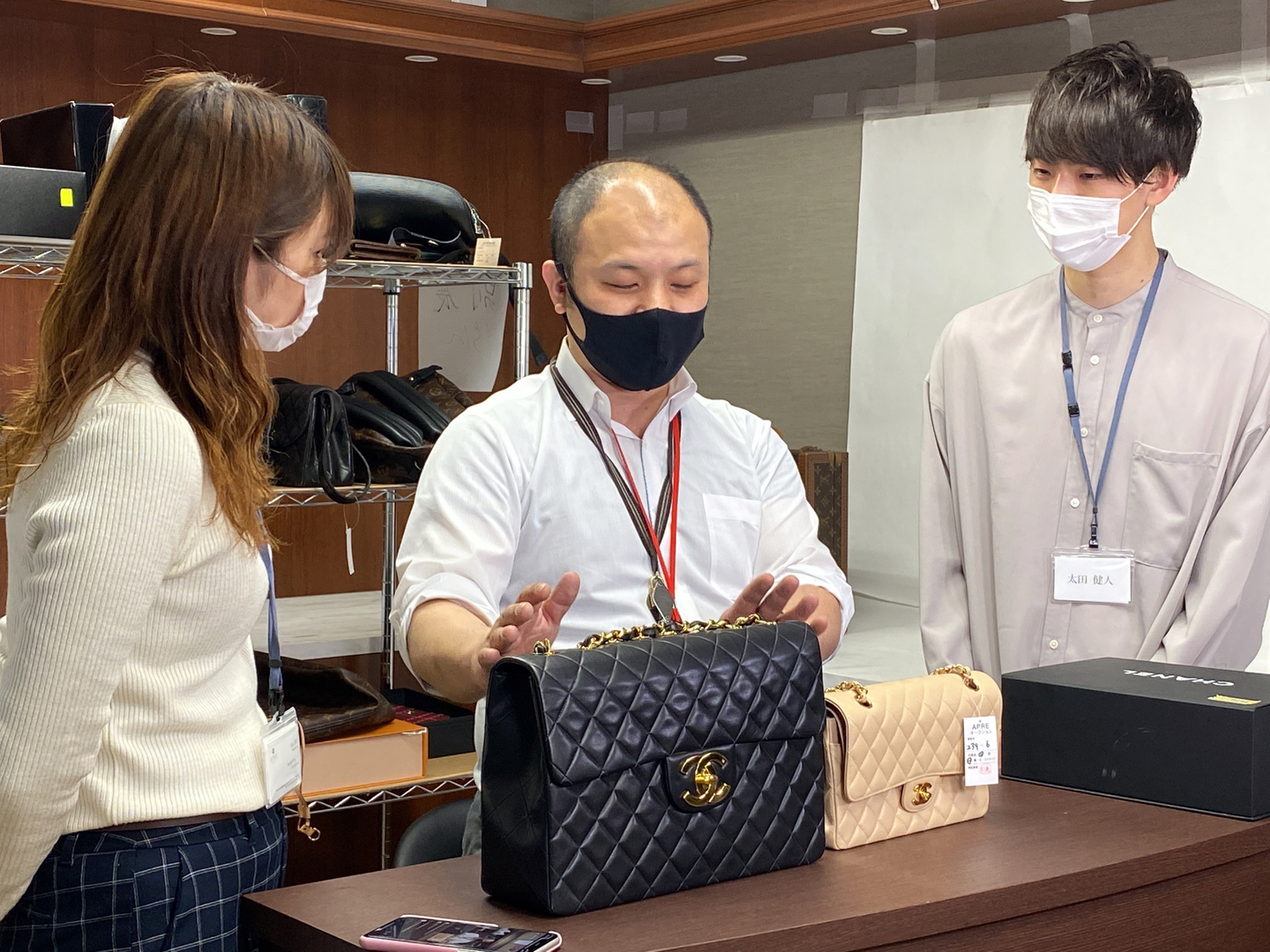 こんにちは。経営企画室荻野です。弊社では毎月ジュエリーやブランド品オークションを開催しており、日々店頭や宅配で買取販売も行っています。私も入社前は、『自分の愛用しているものの価値ってどの位なんだろう?』と思うことがあり、入社早々先輩に『これは本物ですか?』と自分の持ち物について初心者の質問をしたことを覚えています。25日(木)のオークション開催に向け、昨日1回目のYouTube配信とインスタ配信を行いました。24日(水)は、2回目のYouTube配信とインスタ配信があります。是非、みなさんみにきてくださいね。初日の配信は、トラブルがありスタートが少し遅れてしまいましたが、橋元先輩と一緒に4月入社の新卒入社の太田君・小山さんが色々な商品を紹介してくれました。ブランド品についての豆知識や、へー!(そうなんだ!)って思うことも沢山話していますので見てみてくださいね。