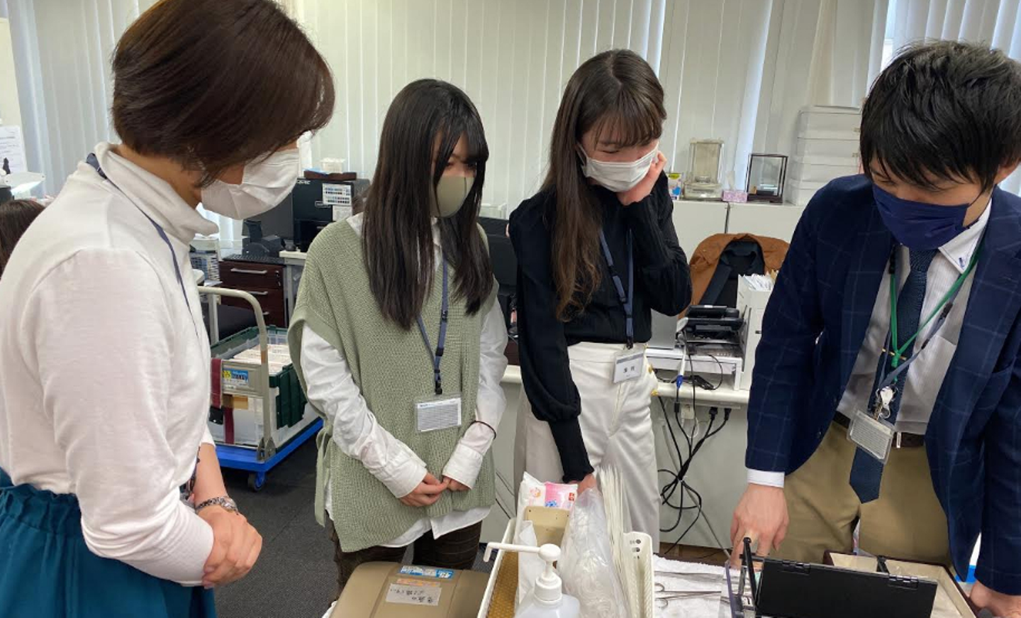 優しく、頼れる先輩に業務を教わり、メンバーたちの目も真剣です。壁島先輩、大人気です!