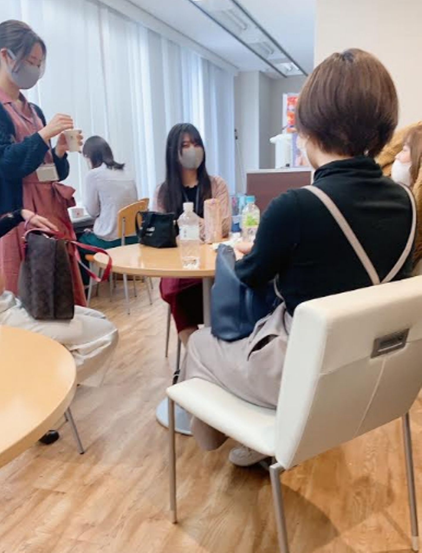 リフレッシュルームには、自動販売機(ドリンク・お菓子)や冷蔵庫・電子レンジ・テレビと、ランチをとる場所として、憩いの場として利用しています。お昼時間には、新入社員の子たちもチラホラ集まります。この日は、ネイルの話も出たり、女子トークも弾んでいました。