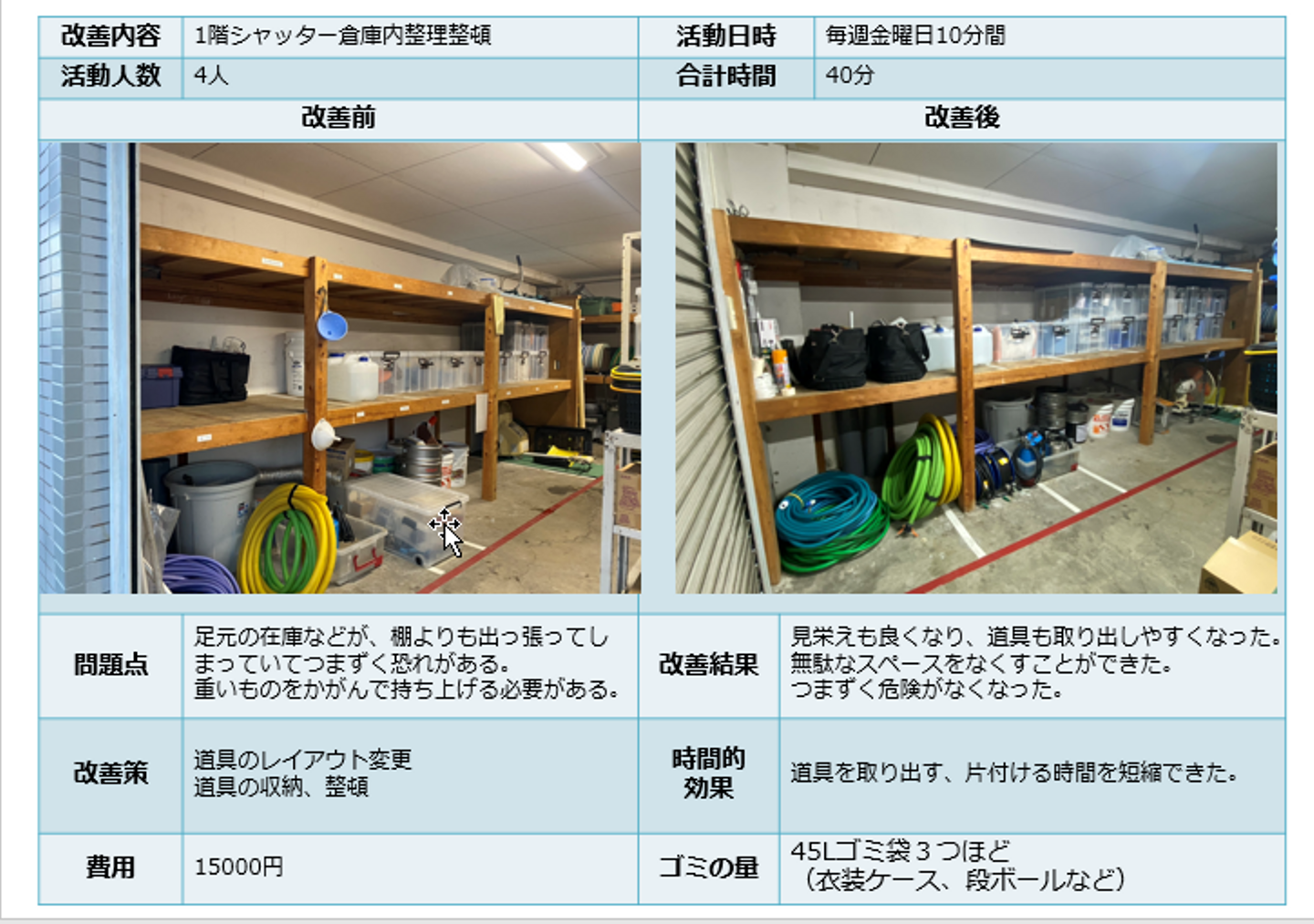その他にも、書類を整理するスキーム作りやトランシーバの管理体制構築、郵送作業スペースの整理など、社内の仕組み作りのなかで「まだ行き届いていないところ」をみんなでテコ入れしていくのが3S活動です!