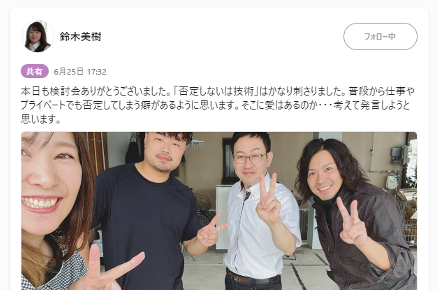 自分では気がつかなかったような視点や気づきをいつも与えてもらえて、仕事へのモチベーションアップやスキルアップの機会となっています。社員にも好評です!