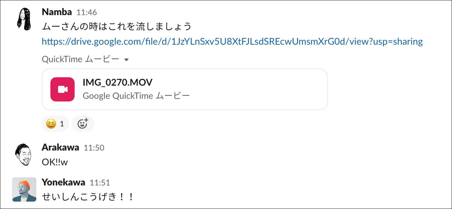 ↓社内イベントでも、手を抜かないことが伝わるスラックのやり取り