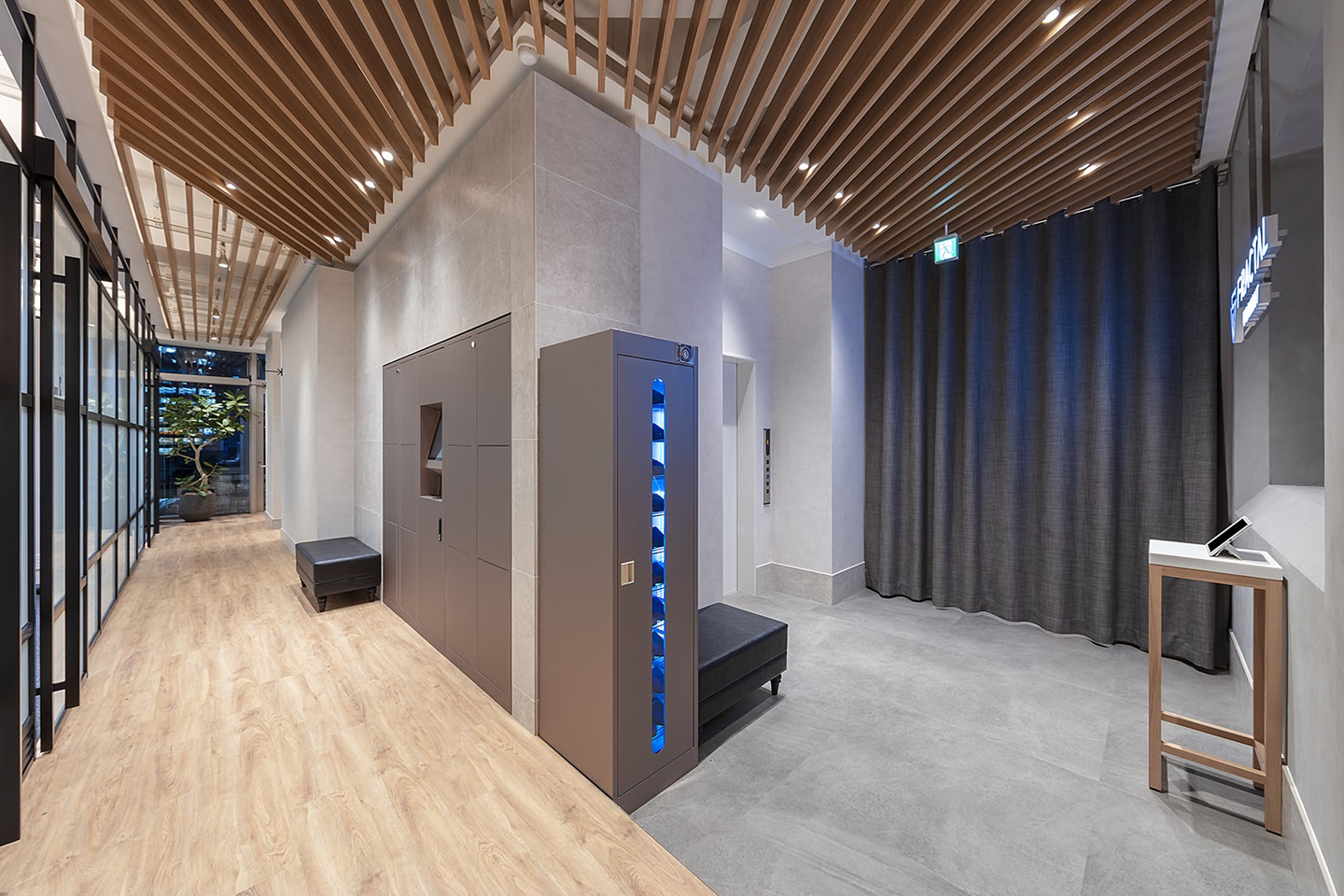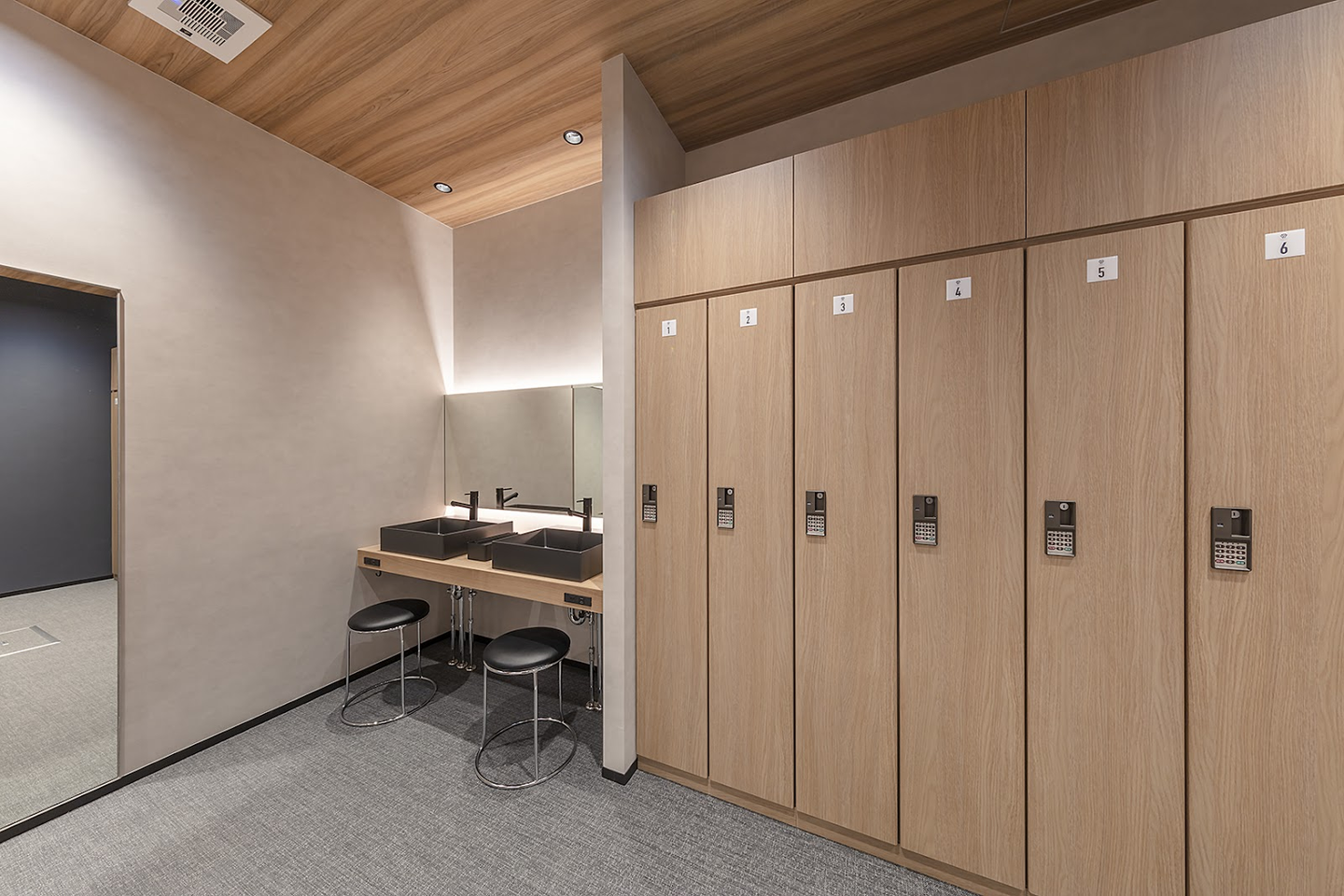 ジムの内装にマッチしたウッド調のロッカーですが、実はセキュリティ機能も申し分ないものを採用しておりますのでご安心ください。