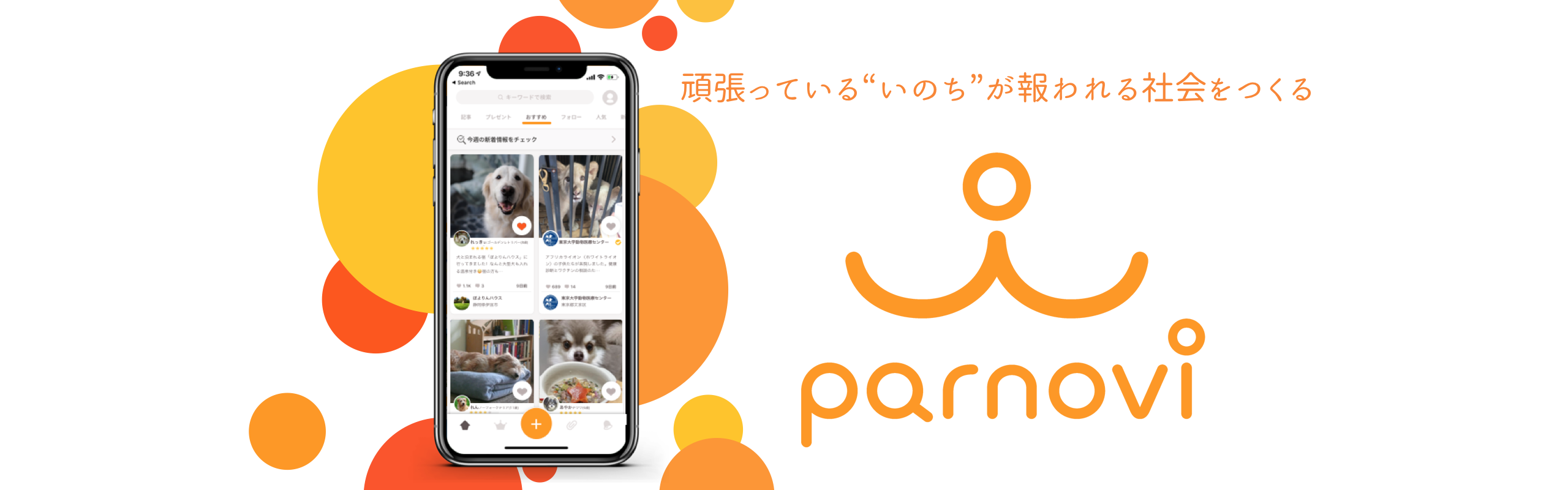 parnovi(ぱるのび)は「ペットの飼い主の写真投稿からペットサービスを探せる新しい口コミSNS」です。 parnoviでは、ペット関連サービス・店舗(動物病院・ドッグラン・カフェ・フード・おもちゃ etc.)の評価・口コミを写真と一緒に投稿することができます。お散歩仲間や気になる飼い主をフォローすることで、彼らの投稿をタイムライン上で閲覧・コメントすることができ、その他の情報の検索も簡単に行うことができます。 ペット社会のビジネスと倫理を両立し、「頑張っている”いのち”が報われる社会」を創ります。