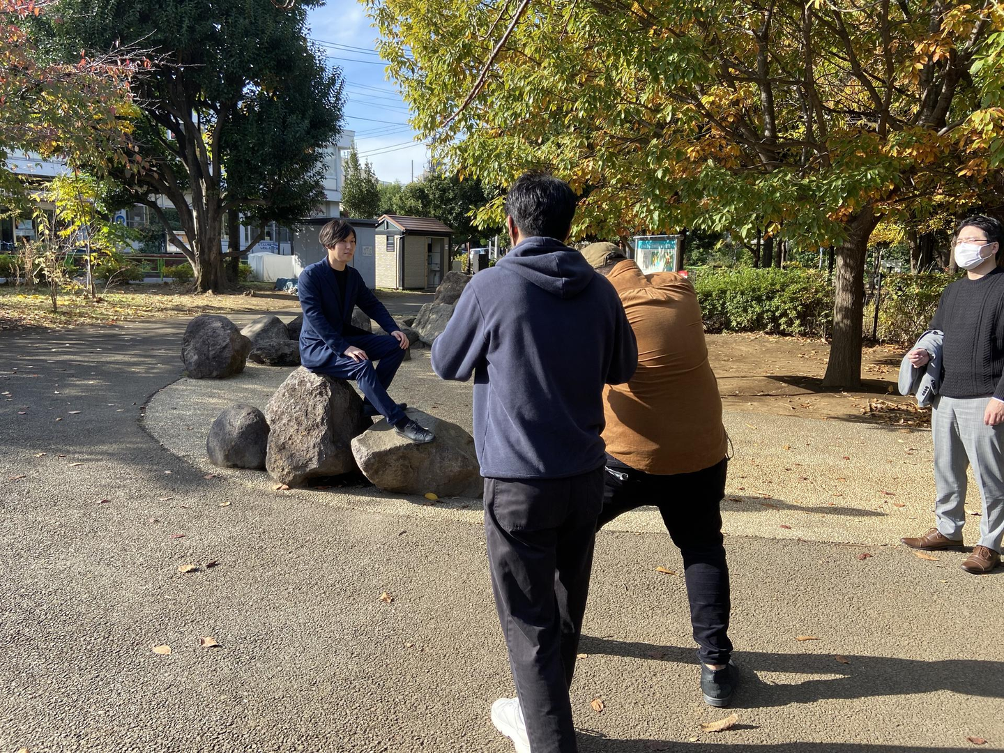 今回はミライ工事のオフィスから徒歩数分の公園で撮影しました!