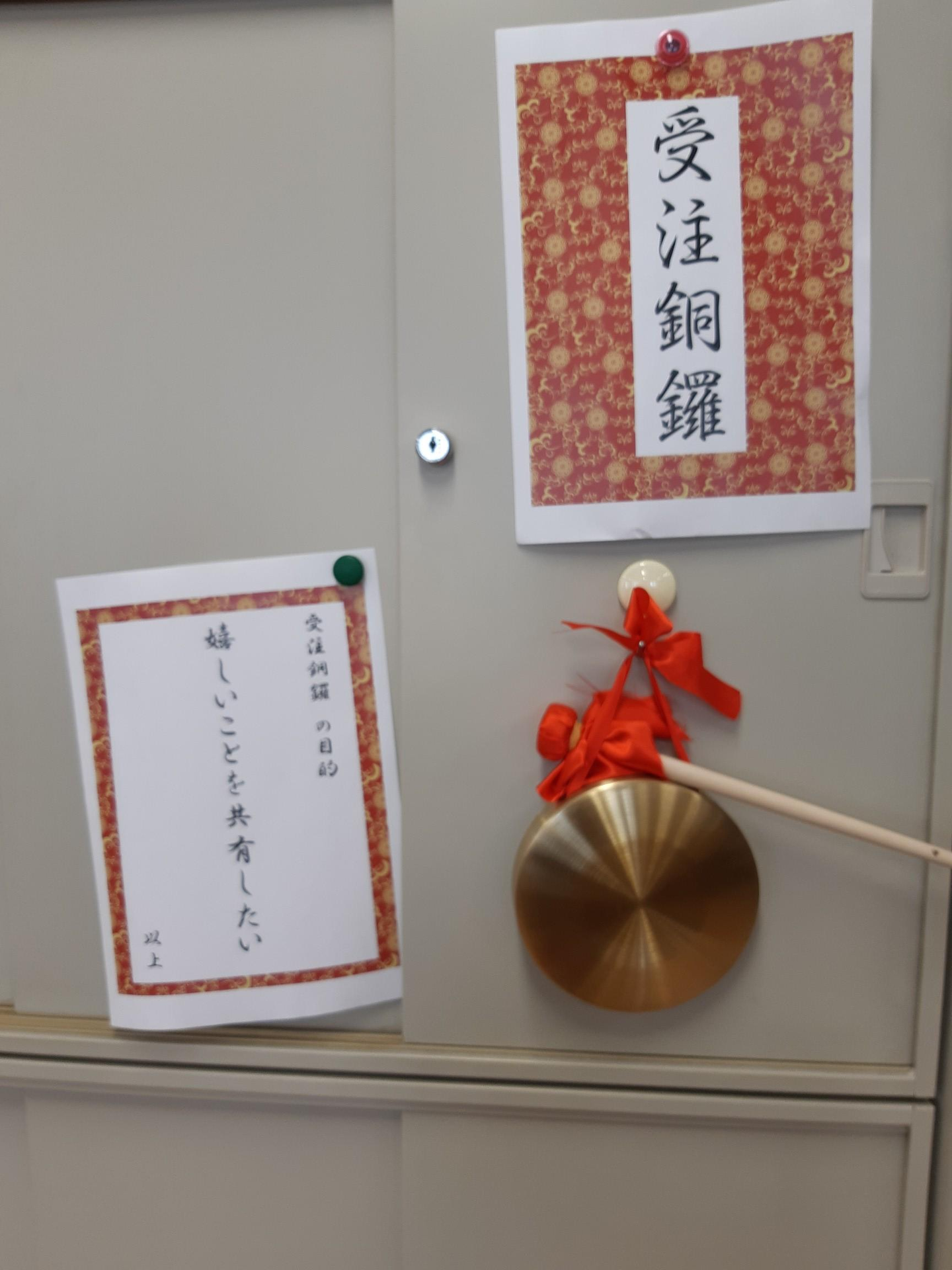 社員の女性が、社長に「受注出来たら銅鑼を鳴らして社員で喜びを共有したい」とポソッと話したところ
