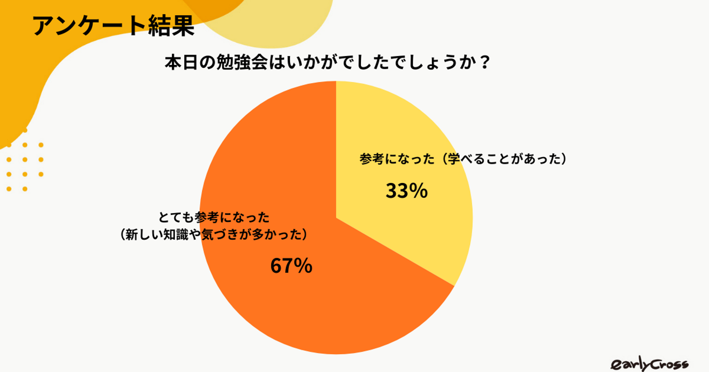 アンケートでは、参加いただいた方から「とても参考になった」「新しい知識や気づきが多かった」との声をいただきました。
