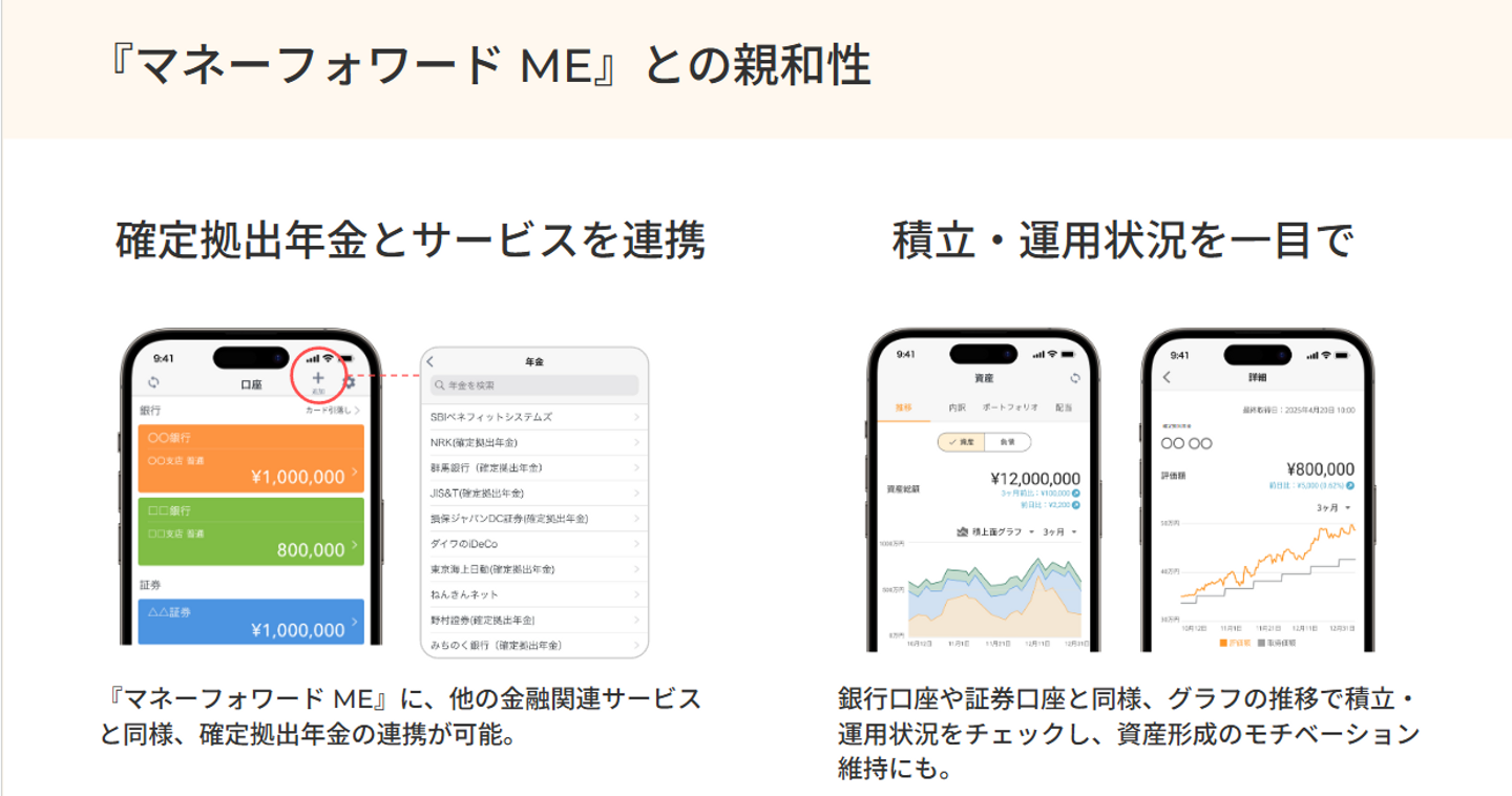毎月の支出を自動で可視化でき、証券口座や企業型DC口座とも連携可能です。