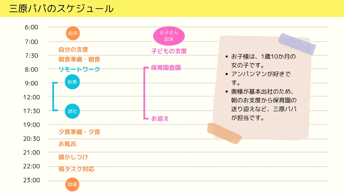 💡 三原さん:「うちは奥さんの仕事の都合で、平日はほぼ自分がメイン担当!」