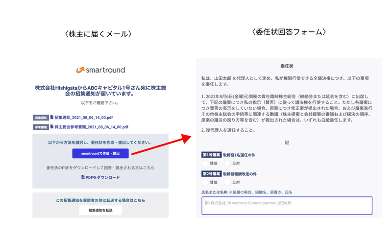 鍛治さん:そうですね。smartroundを使ったことがない人でもメールのリンクからアカウント登録等の必要はなく回答できることによって、銀行系の株主の方からもサクッと回答いただけて非常にスムーズにコミュニケーションでき、結果的にほとんどの株主からsmartround経由で委任状をいただくことができました。