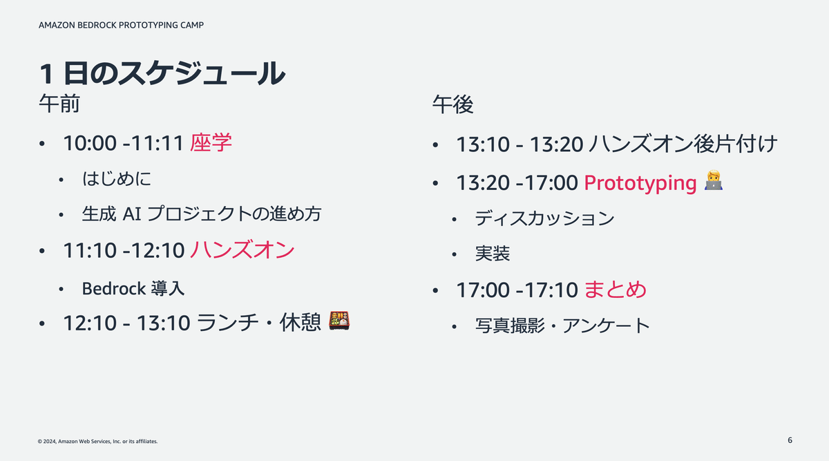 さて、AWSが開催する招待制のワークショップ「Amazon Bedrock Prototyping Camp」に、SREの和田さんと参加してきました💪