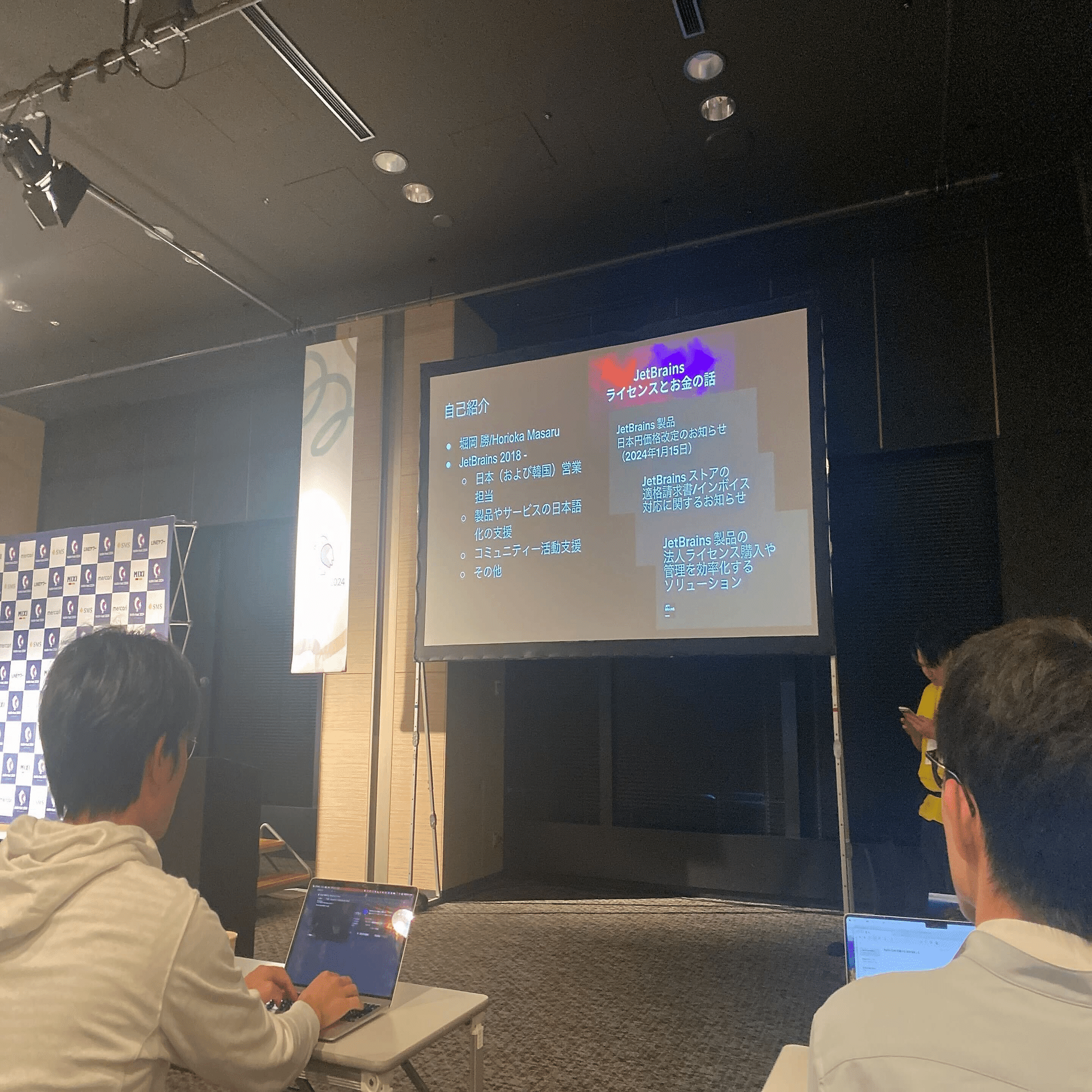 日本語化や日本円価格での販売など、日本サポートの取り組みについて冒頭でお話しいただき、JetBrainsさんに対するありがたみが深まりました。