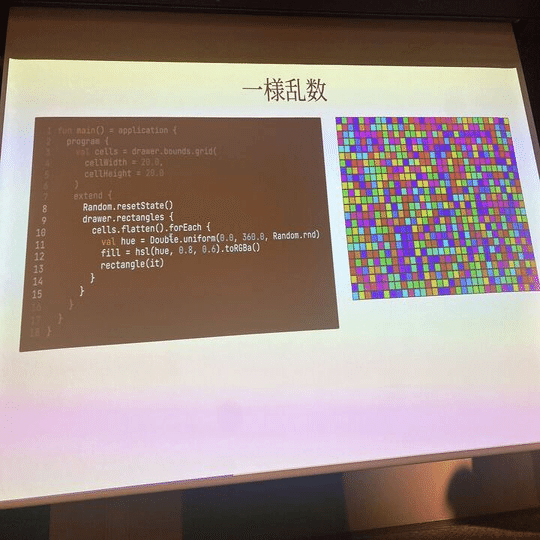 個人的にはProcessingを大学の講義で学んでいたこともあり、話されていた内容をそれなりに理解しながら聞くことができました。実行された結果を眺めるだけでも面白いですね。
