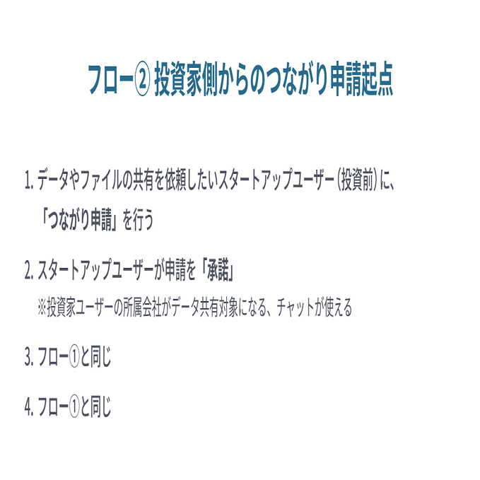 2つ目は、データ共有対象をつながりと紐づけることで共有がしやすくなるとの想定から、自分の会社のメンバーと1人でもつながっている投資家をデータ共有対象にする仕様を追加することに決まったからです。