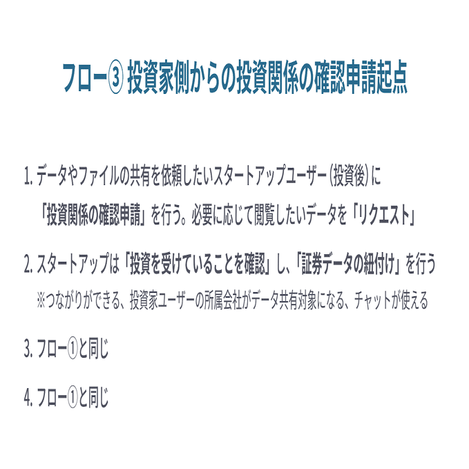 ちなみに、予定では投資家起点のフローの改善をV2とし、その他の改善もそれ以降のスコープで考えていたのですが、チーム全体であらためて検討したところ、実はこの機能は無くても問題ないのではないかという結論に至り、V2はやらないことになりました。