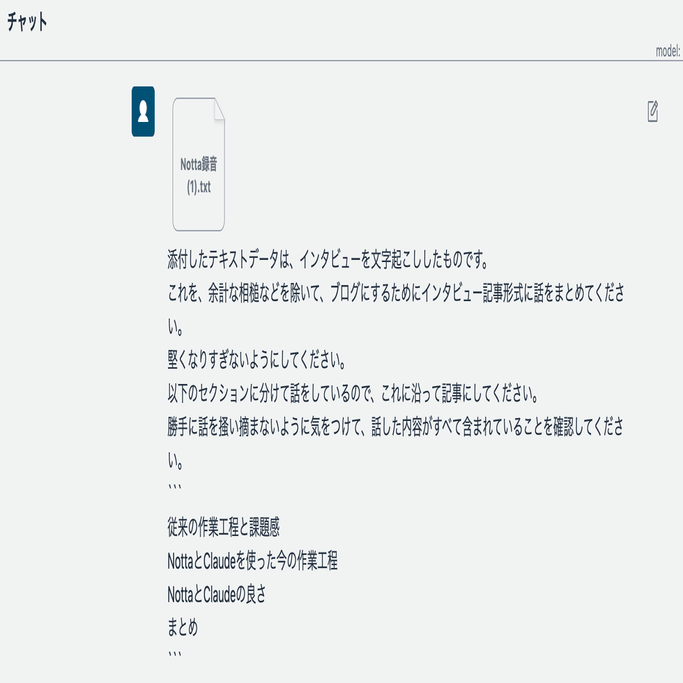 もう、とにかくとにかく、Nottaから出力したテキストデータをぶち込んで、それが「えっ…もうこれ…記事やん…!」な文章に仕上がって出てきた瞬間の感動は忘れられません。