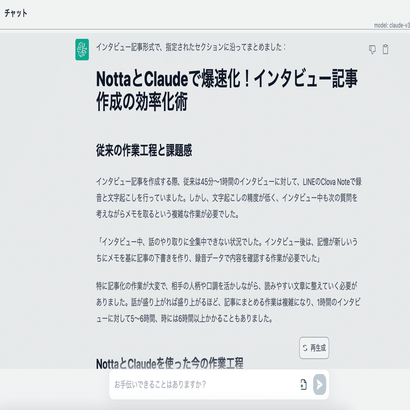 今日は、NottaとClaudeを使って「インタビューからの記事作成」が爆速でできるようになった話を、私の感動と共にお届けします。
