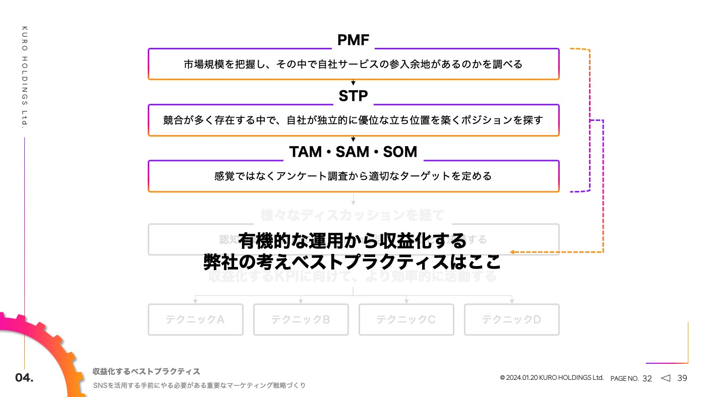 KURO HOLDINGSが考えるベストプラクティスは【PMF・STP・TSS】の3ステップです。