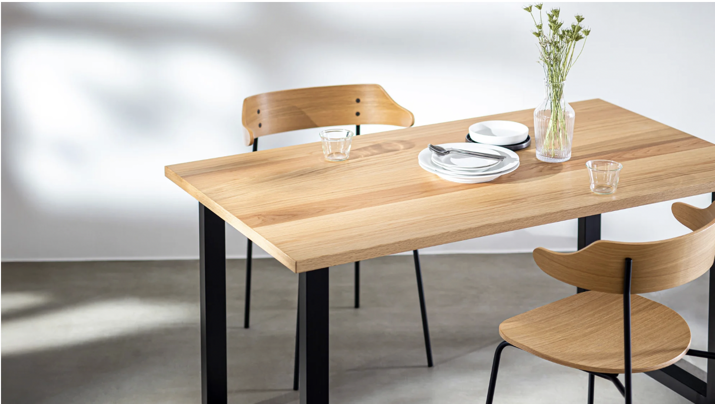 9000通りを超える組み合わせ×1cm単位のサイズオーダーの独自サービス。 あなただけの「ちょうど良い」を実現するパーソナライズ家具のKANADEMONOオリジナルのTHEシリーズのテーブル。
