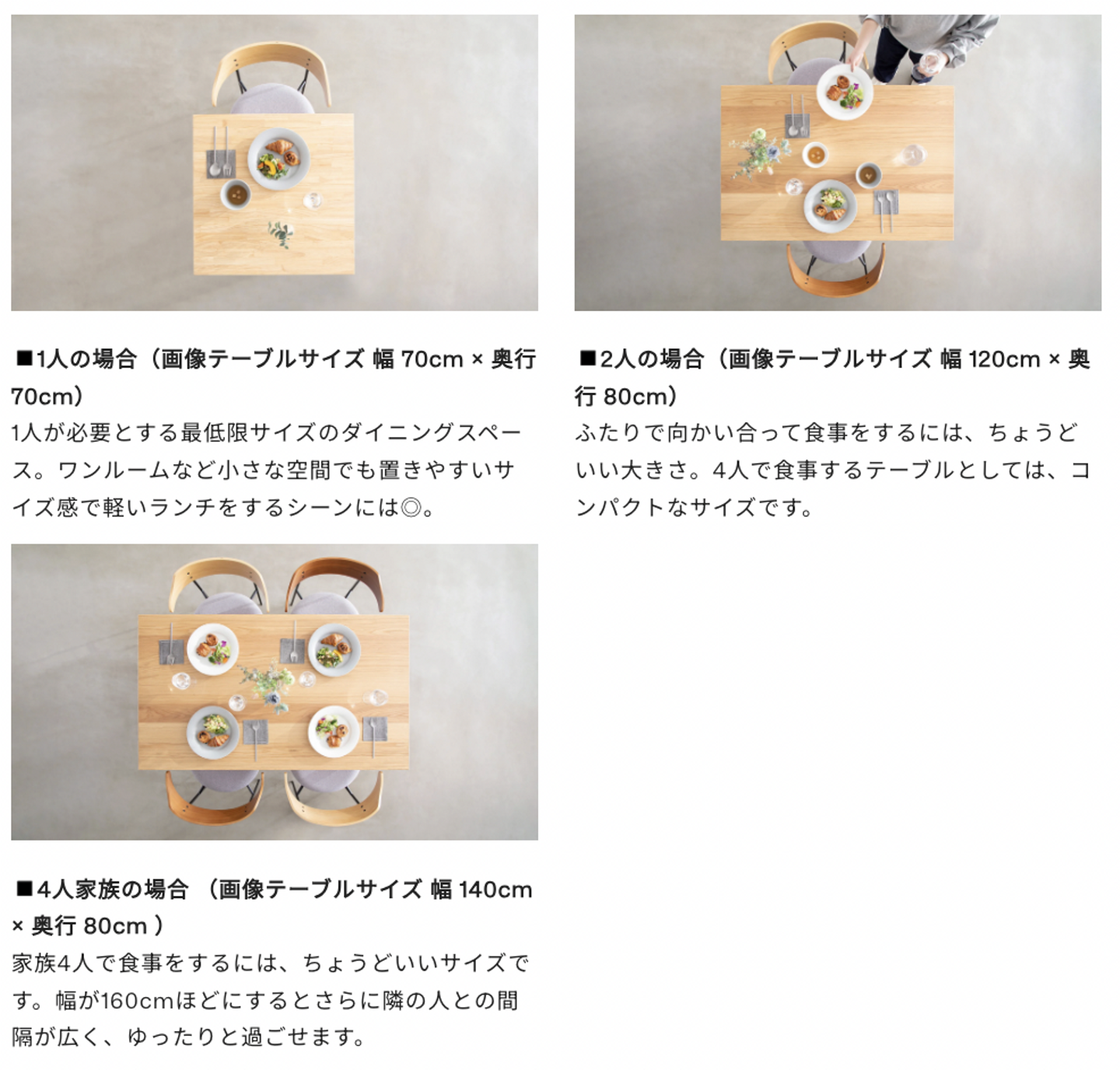 ③テーブルの大きさを選ぶ氷室:天板は部屋の中でも面積が大きい家具なので、理想とするものを選ぶことができれば、「作りたい部屋」に大きく近づけることができます。