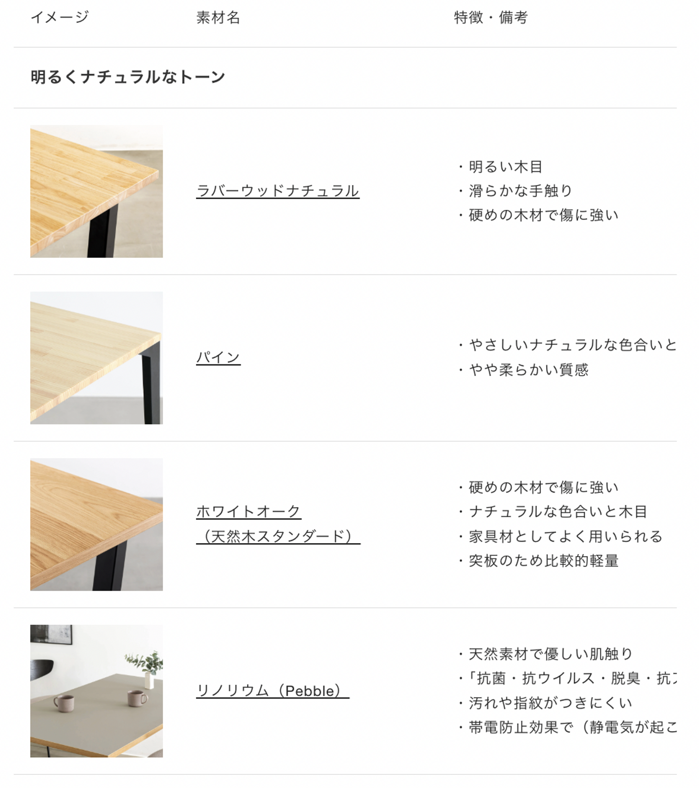 ─── 様々な種類の天板や脚を組み合わせることができますが、選び方のポイントはありますか?