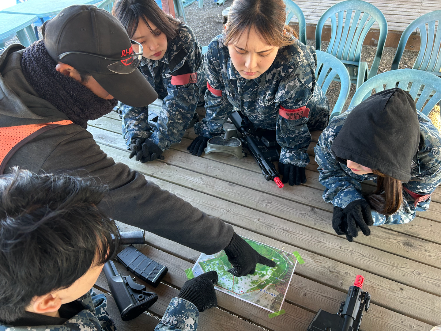 そんな真面目なテーマを掲げつつも、そこはMISM。ただ会議室にこもるだけでは終わりません。行きは車内で動画制作コンテスト、午後は千葉でサバゲー、夜は都内に戻って座学研修&懇親会という、頭も体もフル回転の超アクティブな1日となりました!