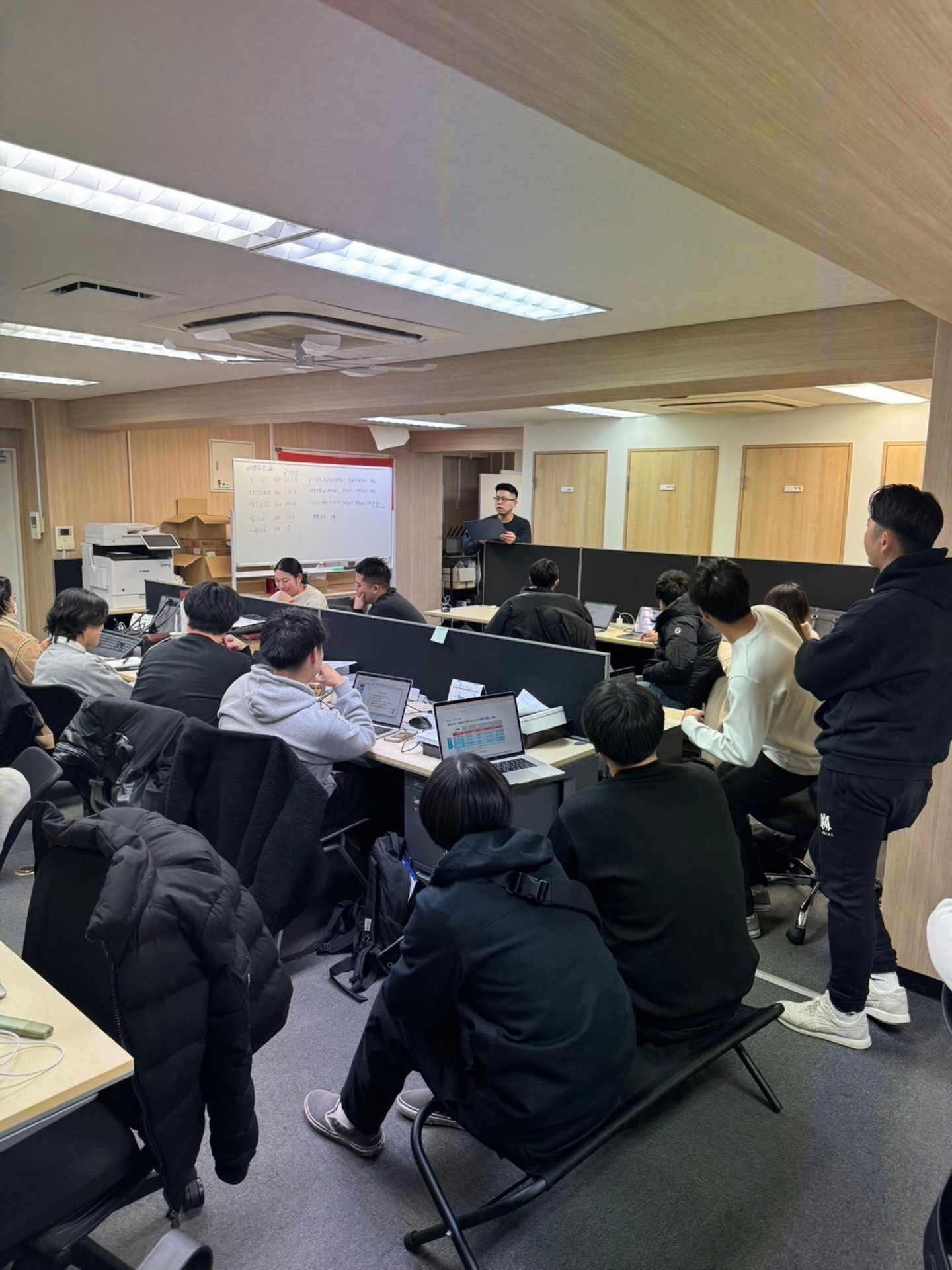 会議にて各営業マンから今年の抱負と目標を述べてもらい、代理店様や副業カウンセラーさんと年間目標を立てました!