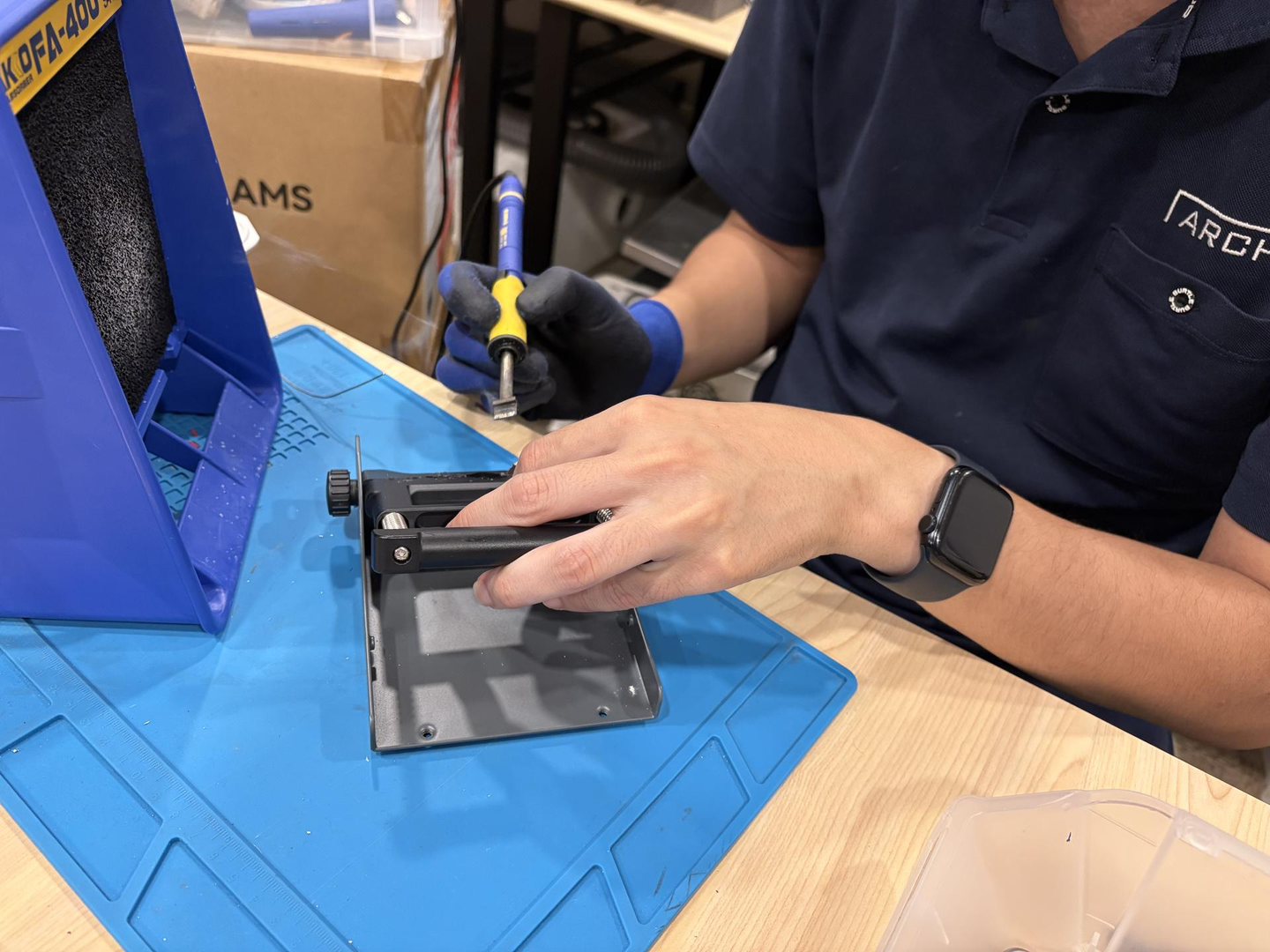 入社後は主に、制作物の作成に携わり、その後は電子機器の評価の業務をしています。