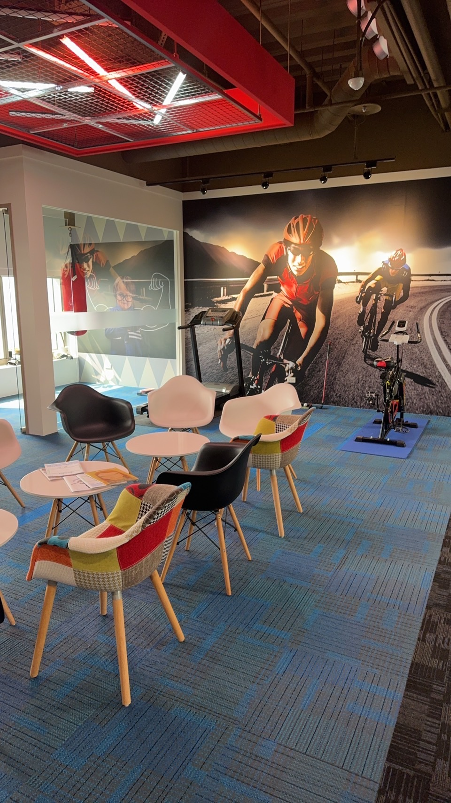 レクリエーションスペースには、ランニングマシンやエアロバイクが完備されています!