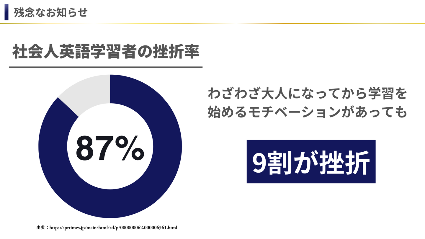 先ほど9割の大人は英語学習に挫折すると言いました。