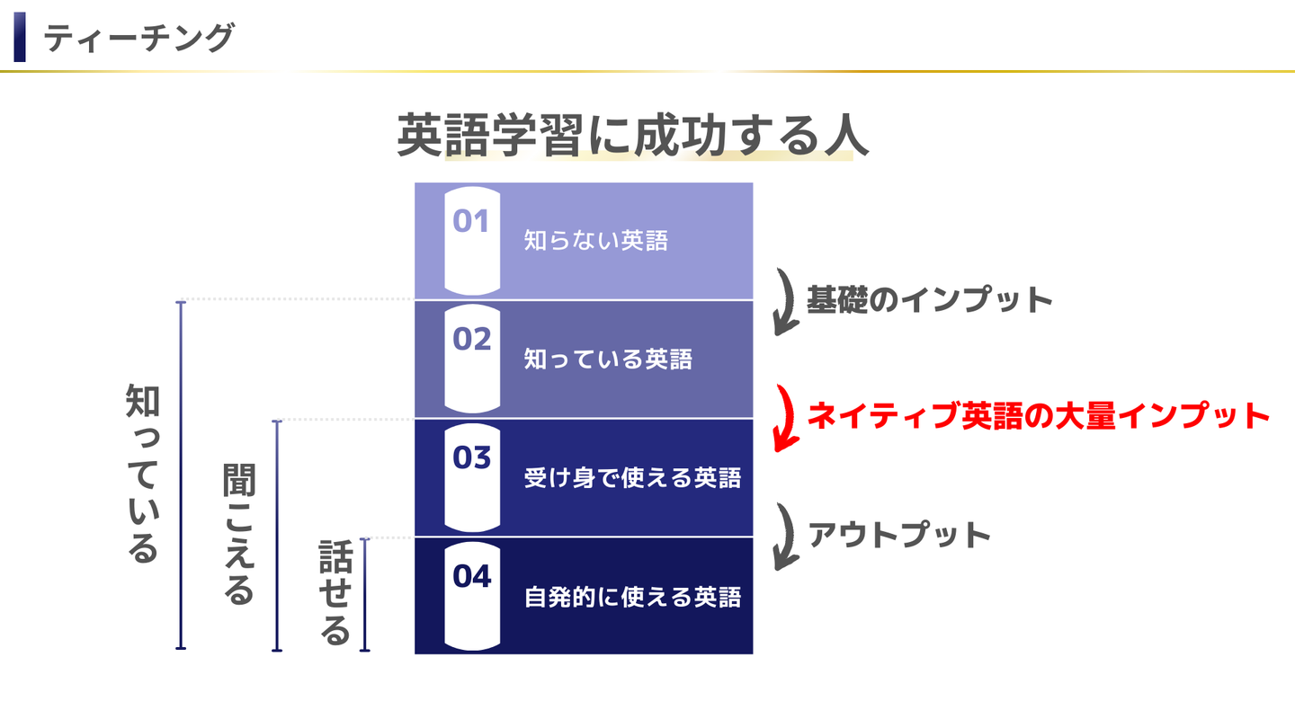 そして、基礎のインプットだけではなく、ネイティブ英語のインプットをすることで、