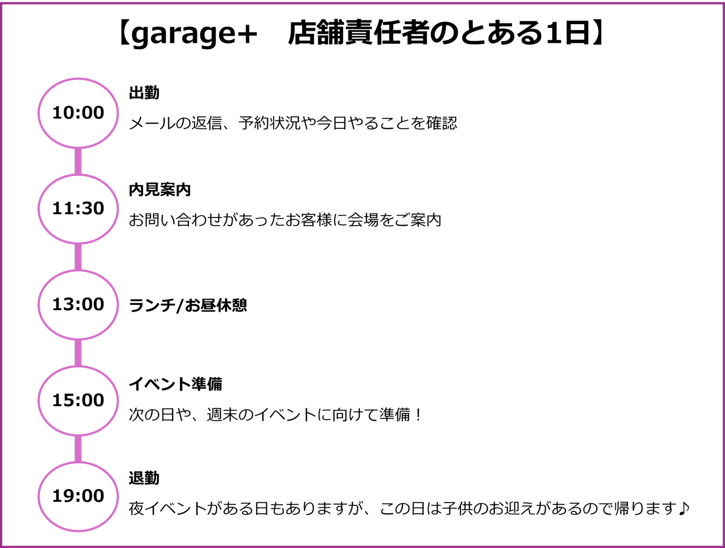 ここまでが事業推進部/garage+店舗責任者の一日になります!