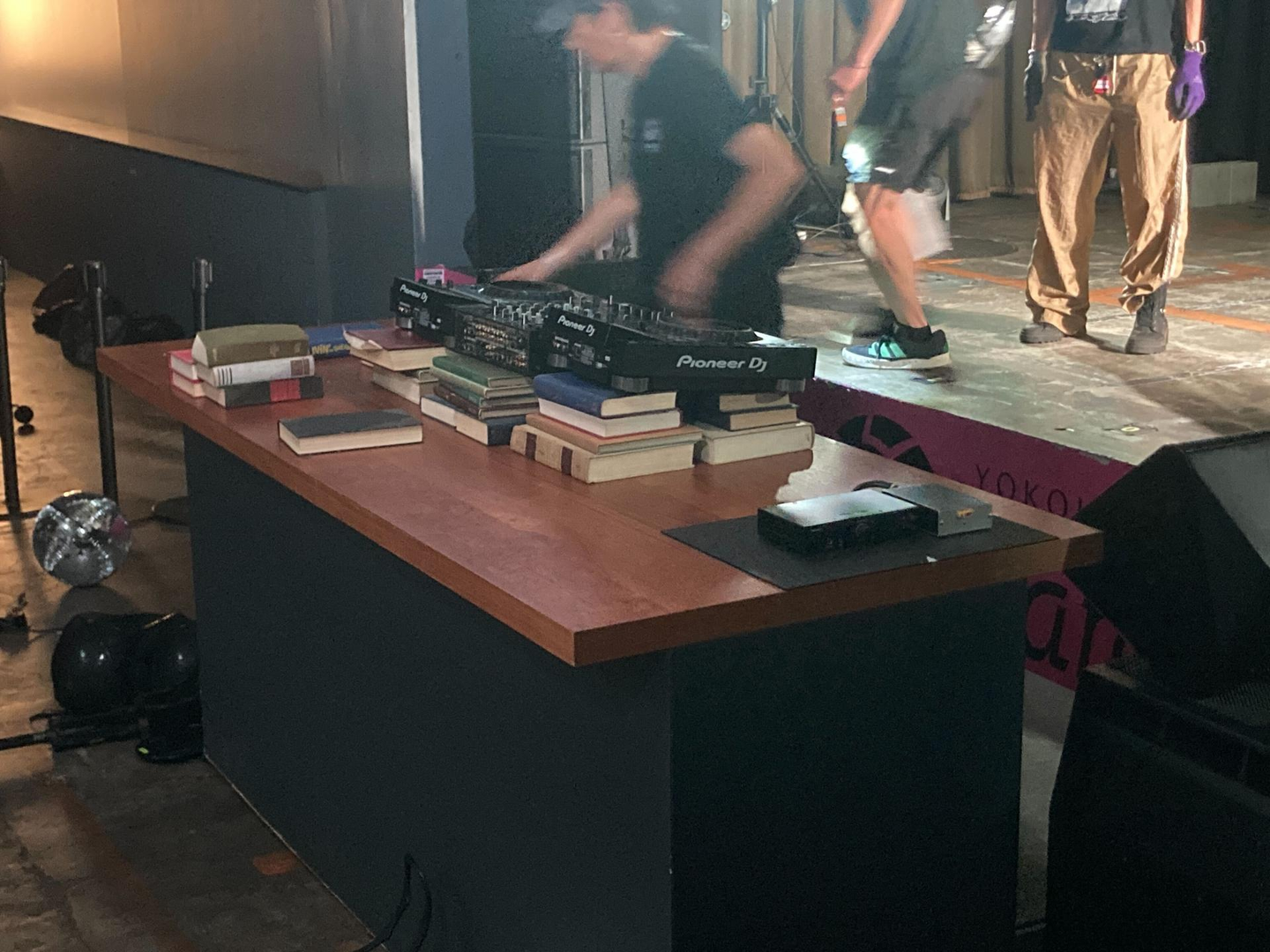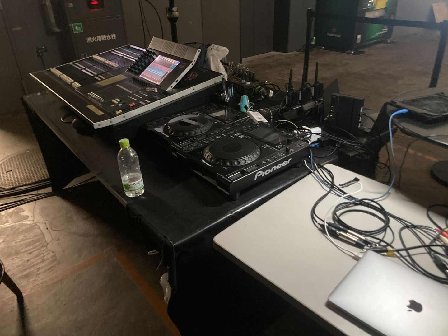 今日はメインステージでのライブになるので、ステージの目の前のど真ん中にDJブースを設置します😎