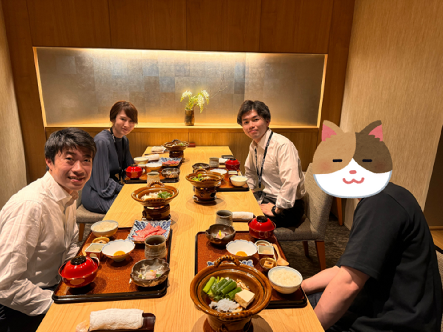 すこしだけテックタッチの仲間を紹介します。私が所属しているソリューションコンサルタントのチームはまだ4名。上長のyoshiさんは入社前にどんなことでも相談してほしい、と納得のできるまで話をしてくれました。採用時も、オファーの後も、将来の仲間となる、チームを超えた様々なメンバーと引き合わせをしてくれました。この人となら前向きに仕事ができそう、と思って入社を決めました。メンターのyuyaさんはいろんな課題に対しても前向きで、どの部門のメンバーからも絶大な信頼を得ていて、とてもリスペクトできる方です。(年齢若くて驚いた)Expertソリューションコンサルタントのdさんは、製品や営業などの幅広い知識はもとより、器が人一倍大きく、同僚の成長を願いながらビジネスを成功に導く思考が高い方で学ぶべきことばかりです。(テックタッチはあだ名で呼びあう文化なので、ありのままの呼び方で書いてます。写真はチームメンバーです)