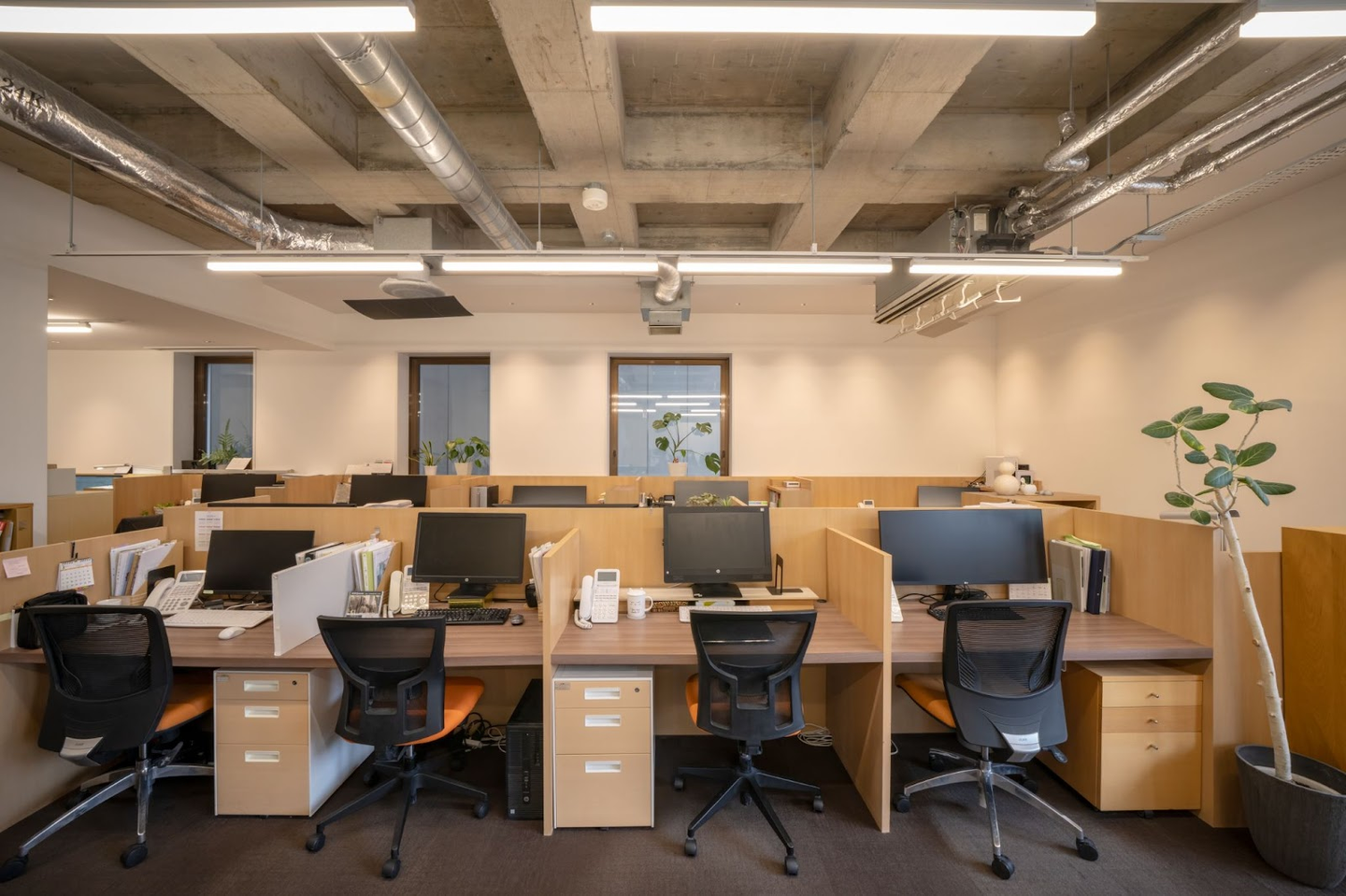 執務室は、現在担当業務の特性に応じて、部署によって固定席とフリーアドレスのハイブリッドを採用しています。少人数・ワンフロアですので、見渡せばだれが何をしているのかを感じられる風通しのよい空間になっています。