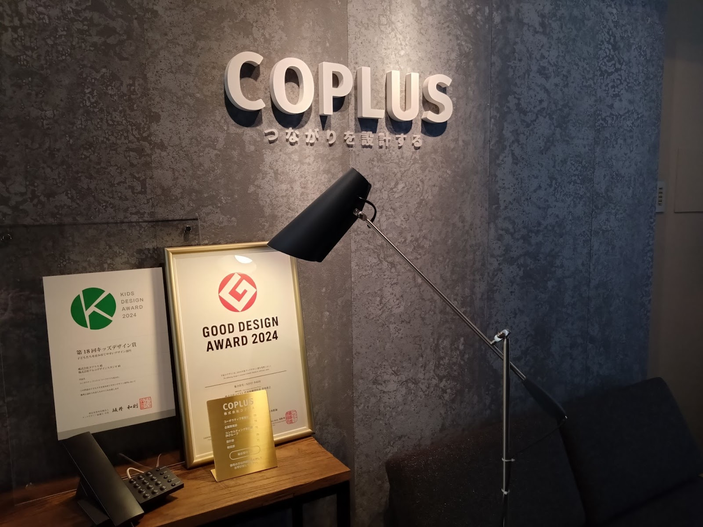 ディスプレイしているのは、コプラスが受賞したグッドデザイン賞とキッズデザイン賞の賞状です。