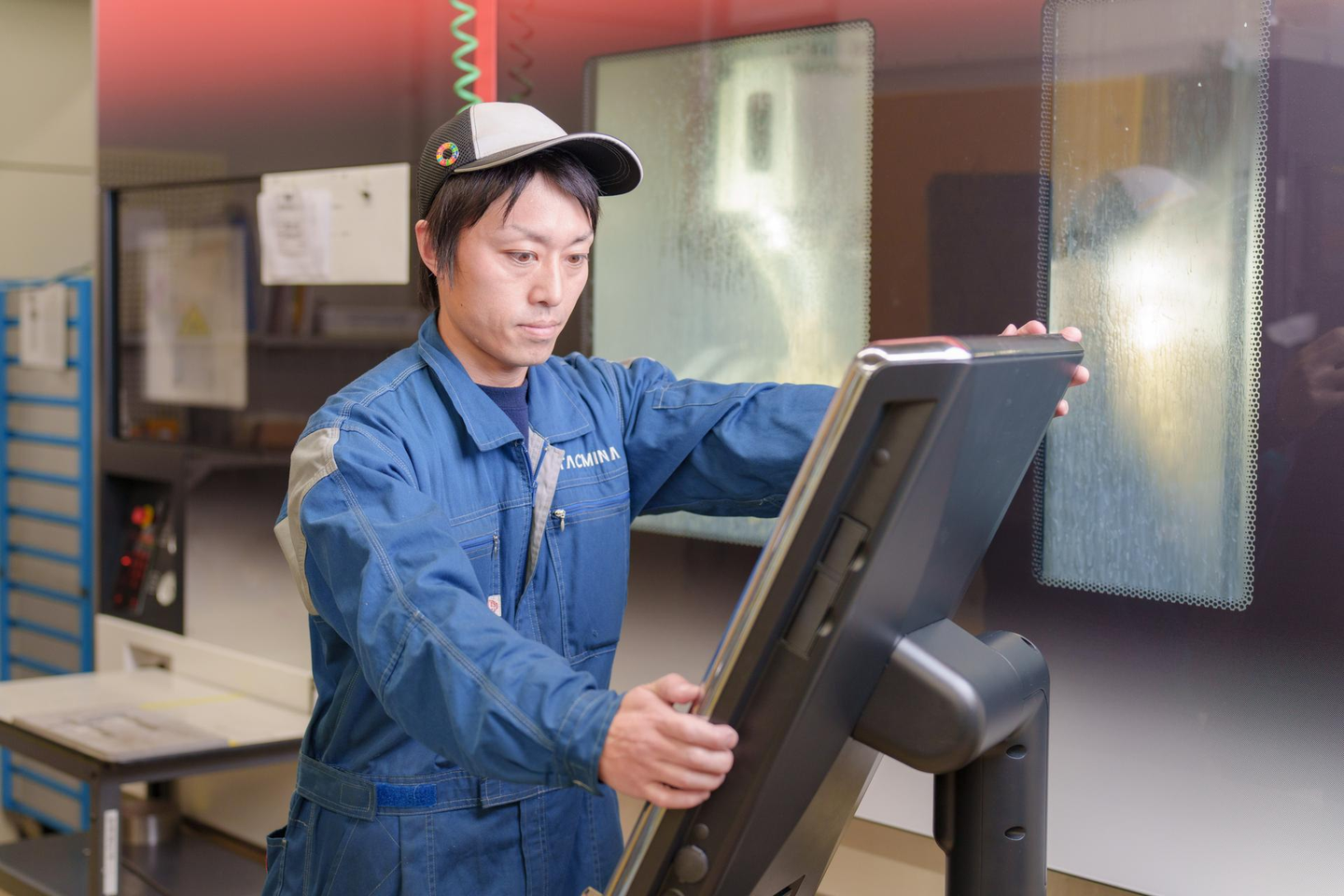 「ポンプ製造に関わる部品(ステンレス・樹脂など)の切削加工。マシニングセンタ、複合加工機でのプログラムの作成、実加工。課内業務の把握・進捗管理を行っています。」